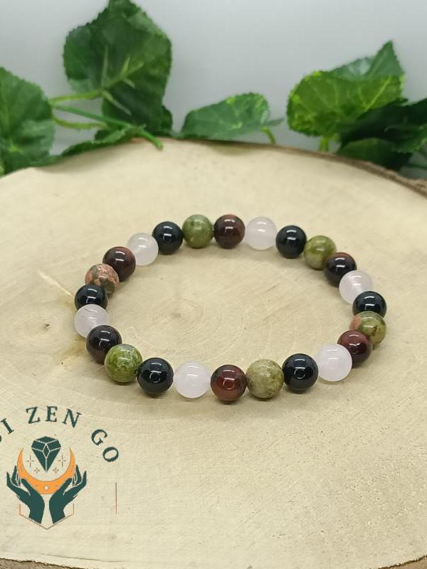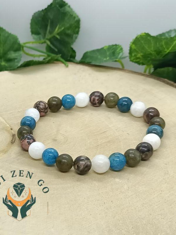➡ L’eau et le sel : Ce bracelet etant composé de divers pierres et d'un élastique, evitez les contact avec l'eau et le sel